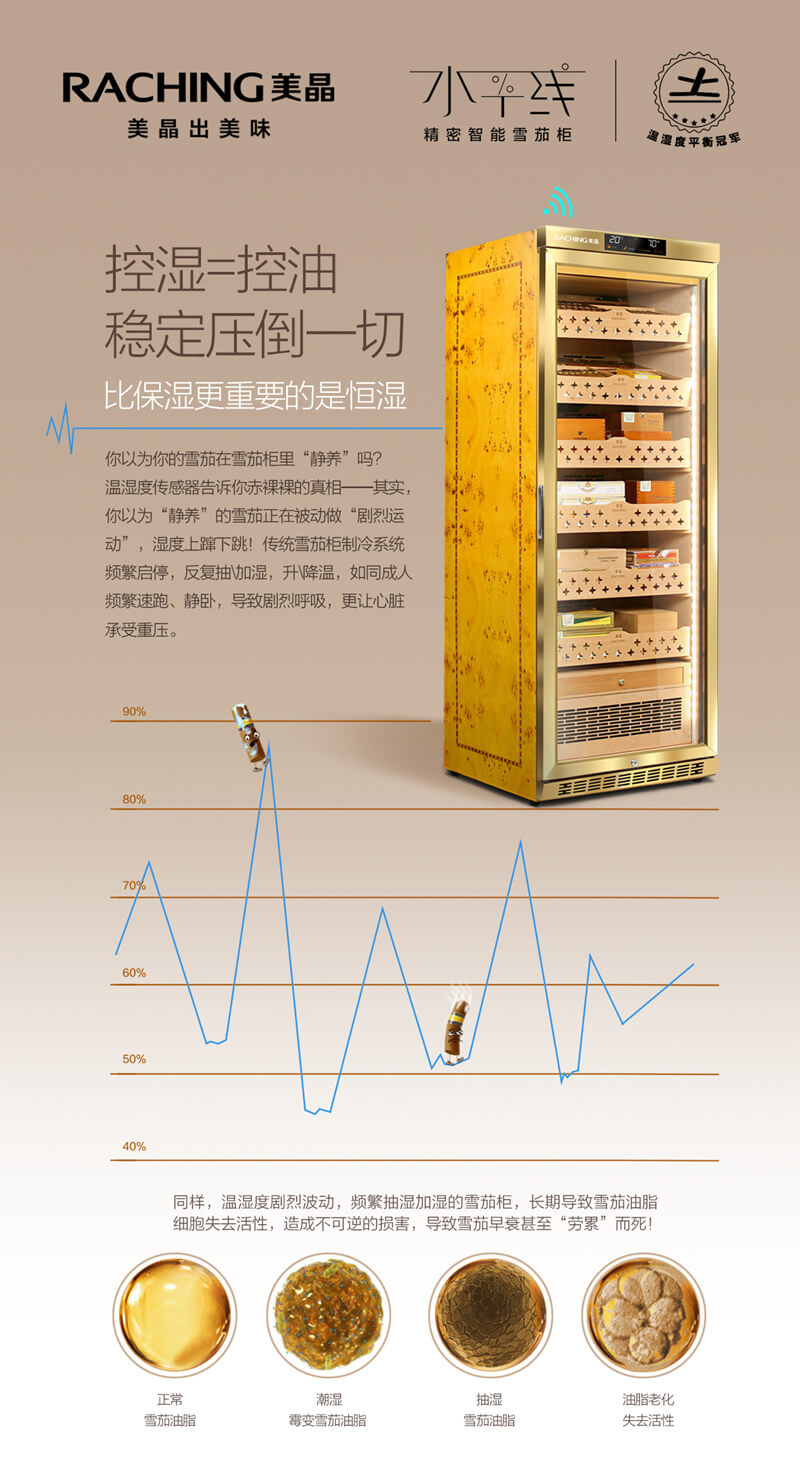 美晶水平線(xiàn)雪茄柜,守護(hù)雪茄生命線(xiàn),雪茄控濕,穩(wěn)定壓倒一切
