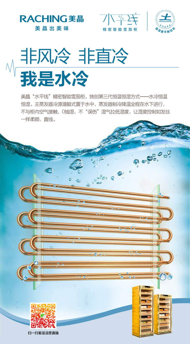美晶“水平線”精密智能雪茄柜顛覆性技術(shù),全球第一臺“水冷式”家用冷柜\恒溫恒濕柜,非風冷、非直冷
