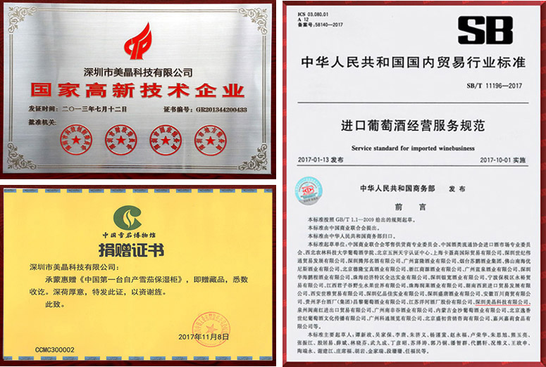 2018年11月,美晶公司再次被評為中國“國家高新技術(shù)企業(yè)”,這也是國內(nèi)酒柜雪茄柜行業(yè)的唯一一家企業(yè)。