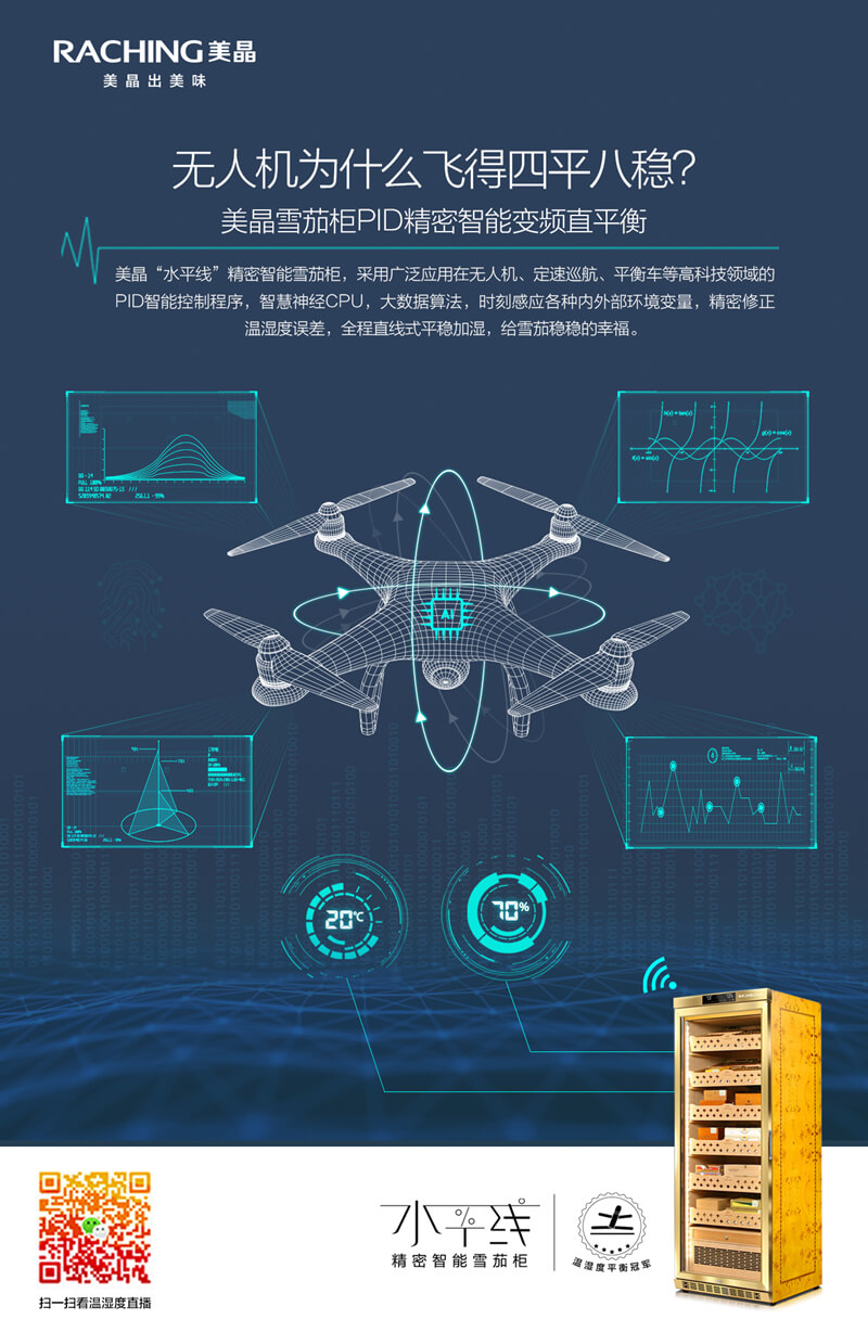 美晶“水平線”精密智能雪茄柜采用廣泛應(yīng)用在無人機(jī)、定速巡航、平衡車等高科技領(lǐng)域的PID智能控制程序。