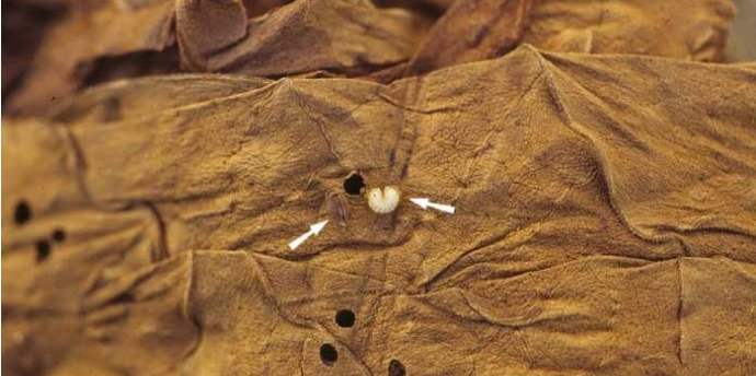 雪茄蟲,學(xué)名煙草甲 (Lasioderma Lerricorne),生長周期約12周,分為四個(gè)階段:蟲卵、幼蟲、蛹、成蟲。在煙草生長和雪茄生產(chǎn)過程中的某一時(shí)刻,雌甲蟲潛入煙草,并在煙草上產(chǎn)卵。蟲卵孵化后,幼蟲就會(huì)開始吞噬煙草。成蟲則會(huì)從雪茄開始,在茄體上形成孔洞,并且繼續(xù)蛀蝕雪茄,輕則影響雪茄美觀,重則千瘡百孔整支雪茄報(bào)銷。而雌性雪茄蟲還會(huì)在雪茄中產(chǎn)卵,產(chǎn)生更多的雪茄蟲,如此循環(huán)。