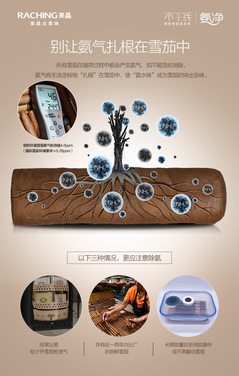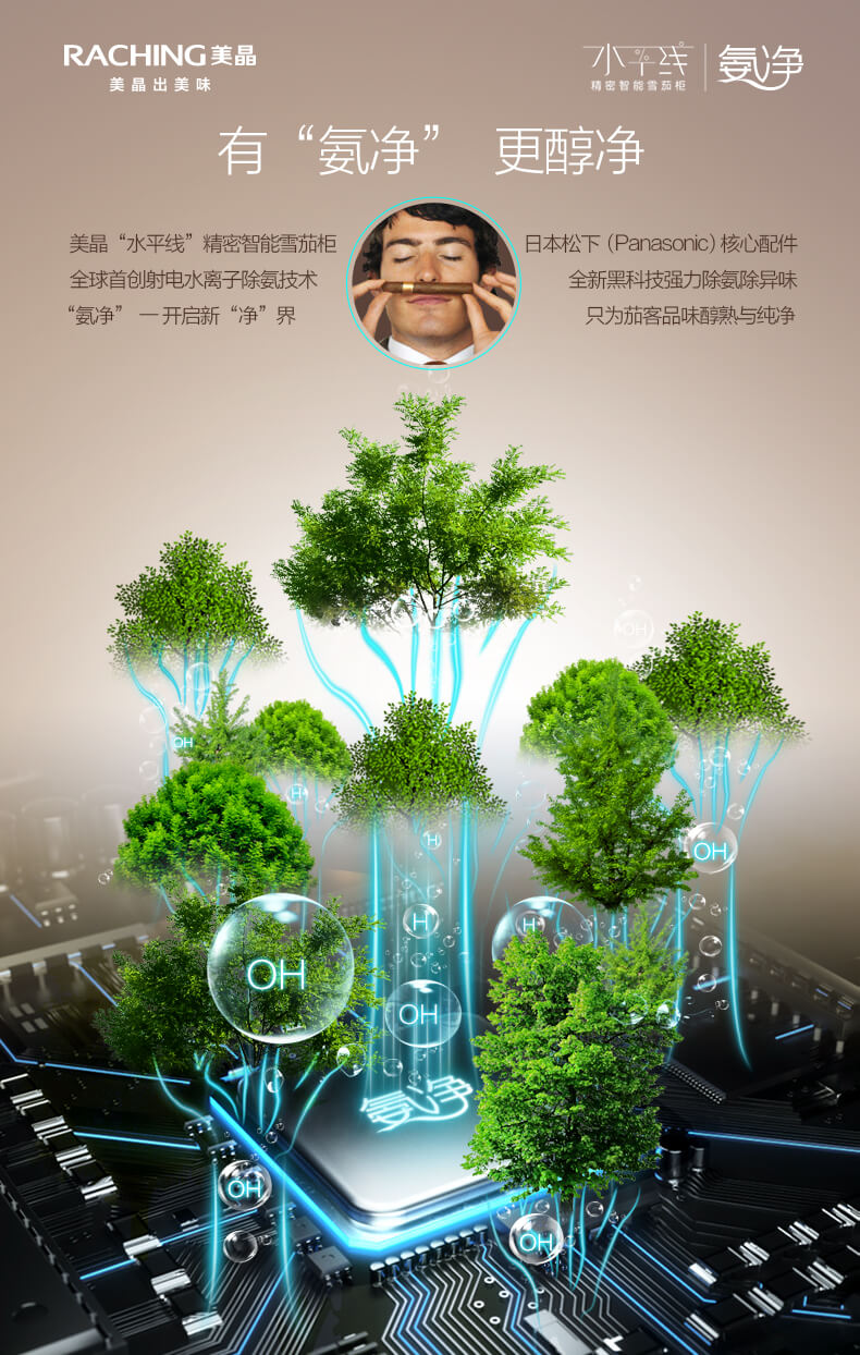 有“氨凈”,更醇凈!美晶“水平線”雪茄柜全球首創(chuàng)射電水離子除氨技術(shù)。
