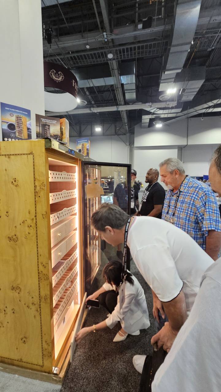 在過(guò)去幾年由于口罩的影響近三年沒(méi)法到場(chǎng)參加展會(huì),即使這樣依然阻擋不了美國(guó)雪茄客對(duì)高品質(zhì)雪茄柜的喜愛(ài)。事隔4年,美晶這次參展更像是和美國(guó)老朋友的“見(jiàn)面會(huì)”。