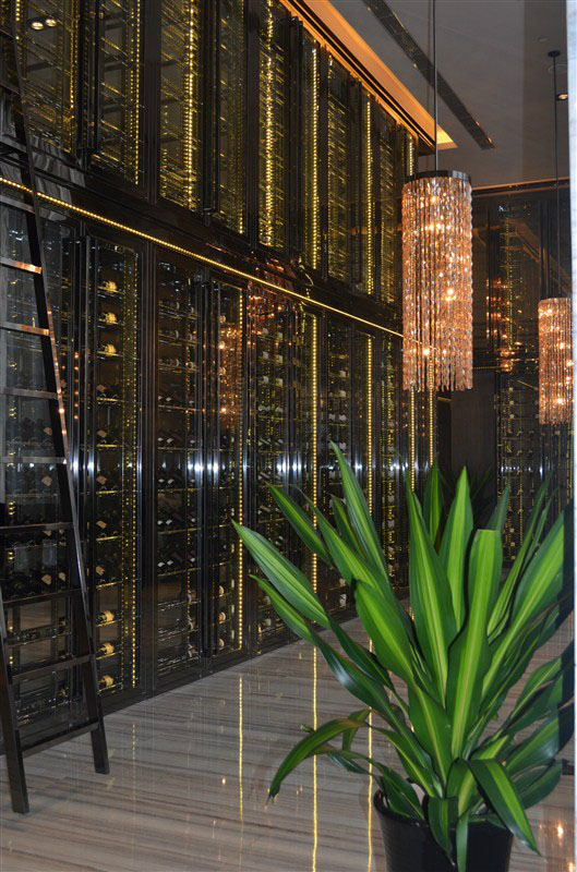 美晶公司為雅居樂(lè)集團(tuán)會(huì)所定制的黑鏡鋼(黑鈦金)不銹鋼恒溫酒柜已完工并交付使用,整體展現(xiàn)了一種高檔神秘的氣質(zhì),如圖。