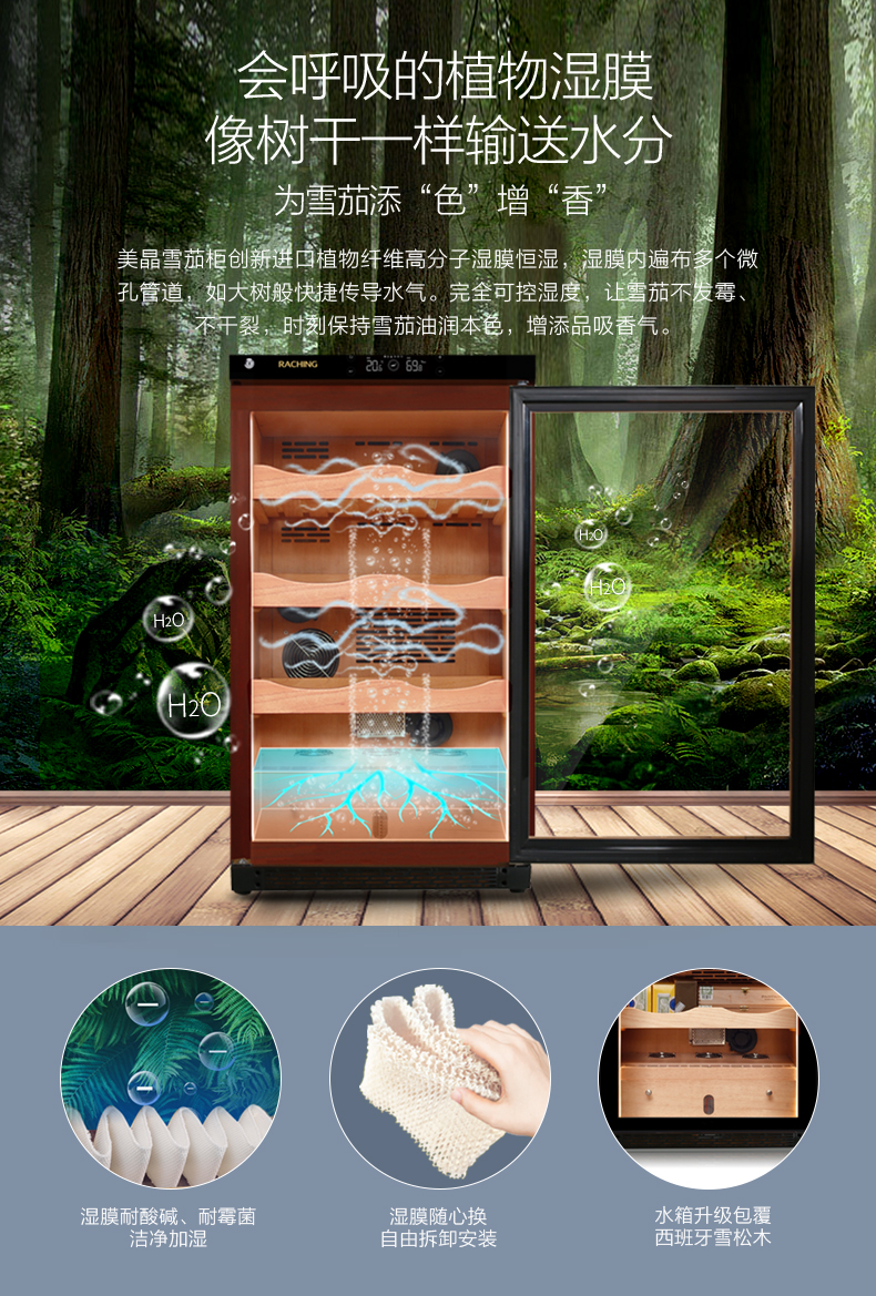 木制內(nèi)膽無冷凝水,吸濕、保濕效果更好,更能有效調(diào)節(jié)柜內(nèi)濕度。