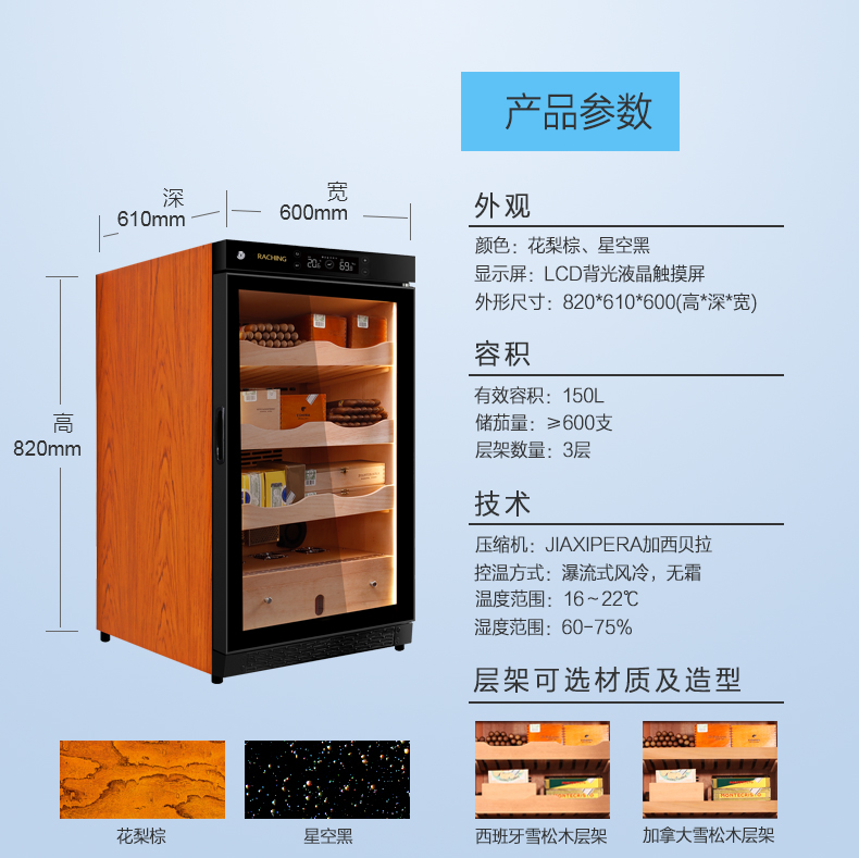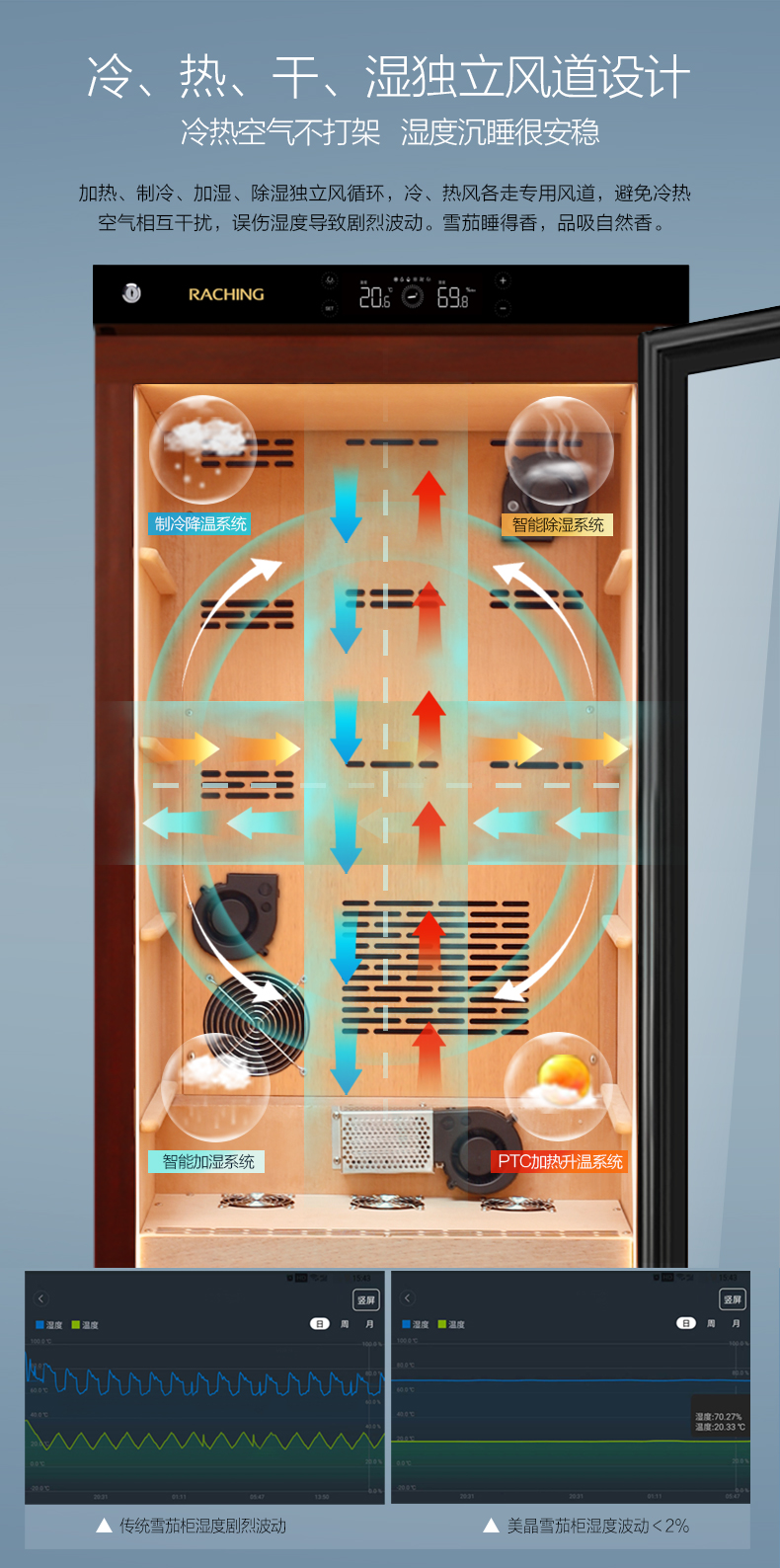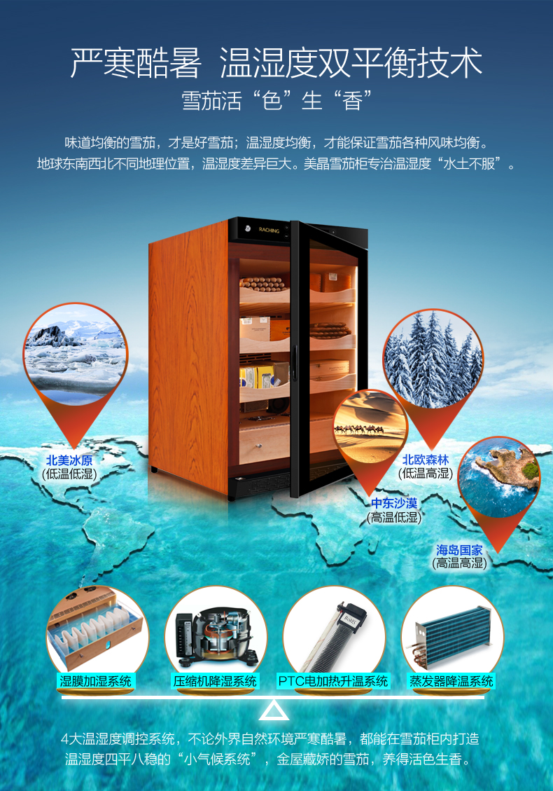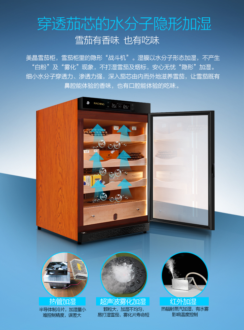 箱體內(nèi)永無傳統(tǒng)鈑金雪茄柜濕漉漉流水及結(jié)霜現(xiàn)象,