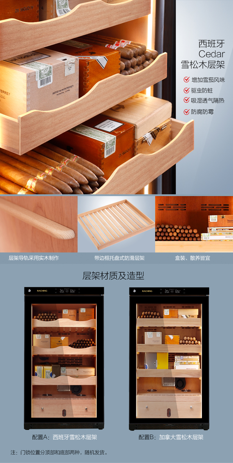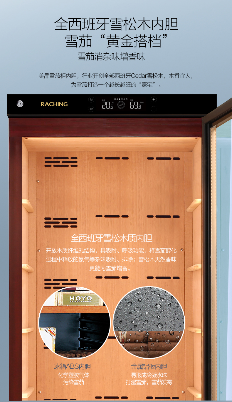美晶雪茄柜全西班牙雪松木內(nèi)膽,能很好地醇化雪茄,