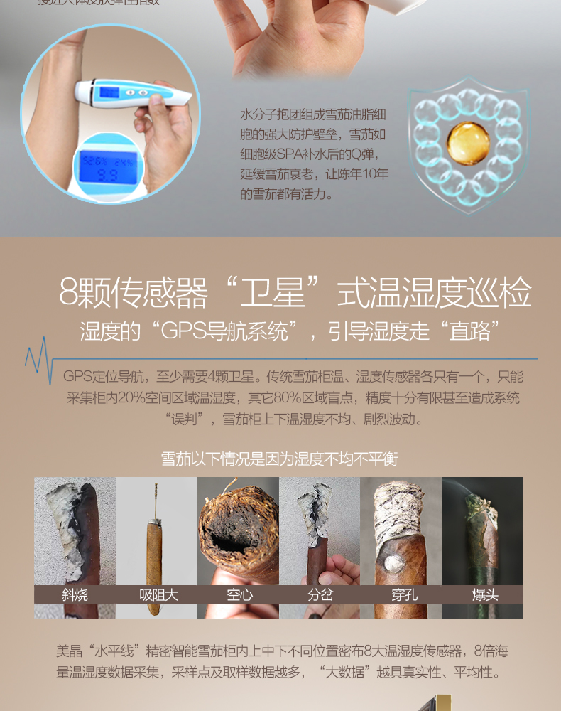 柜內(nèi)上中下密布7大溫濕度傳感器,