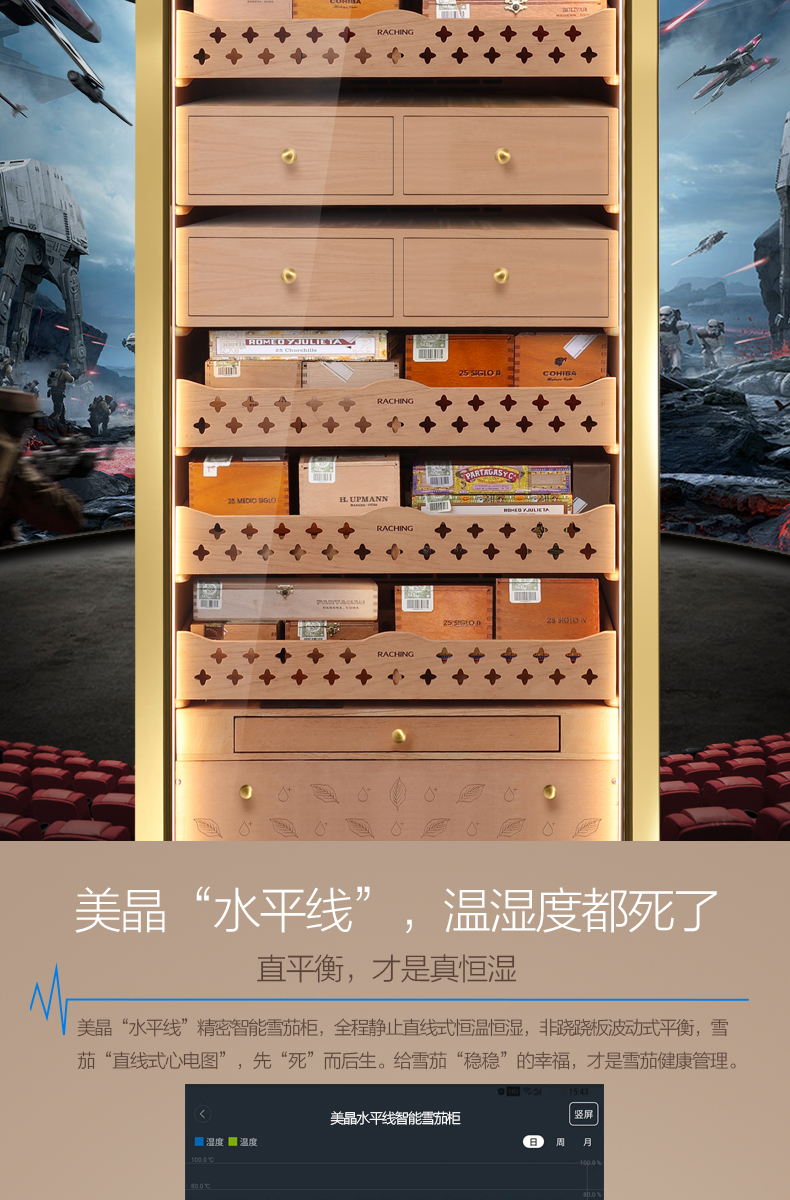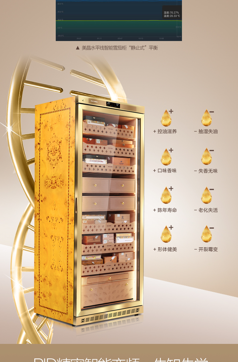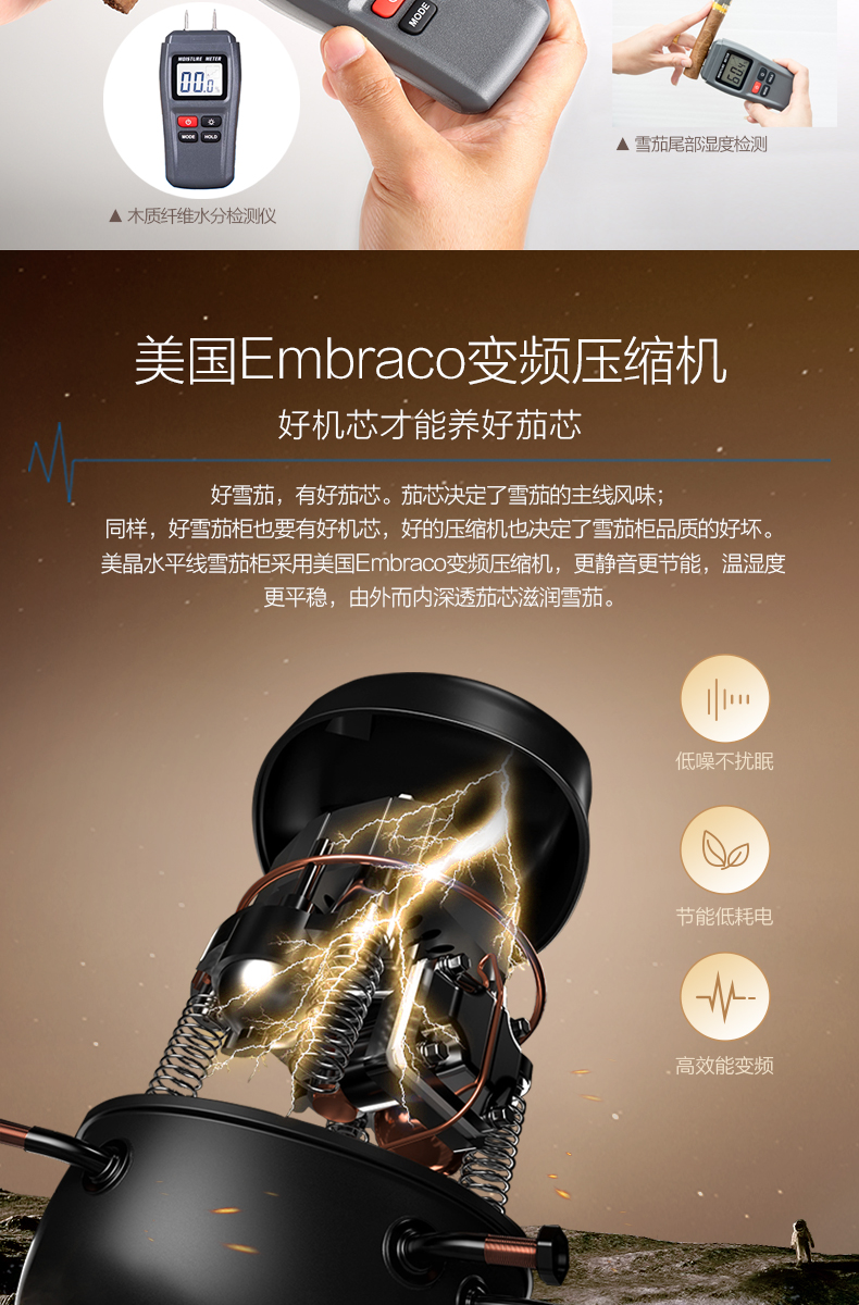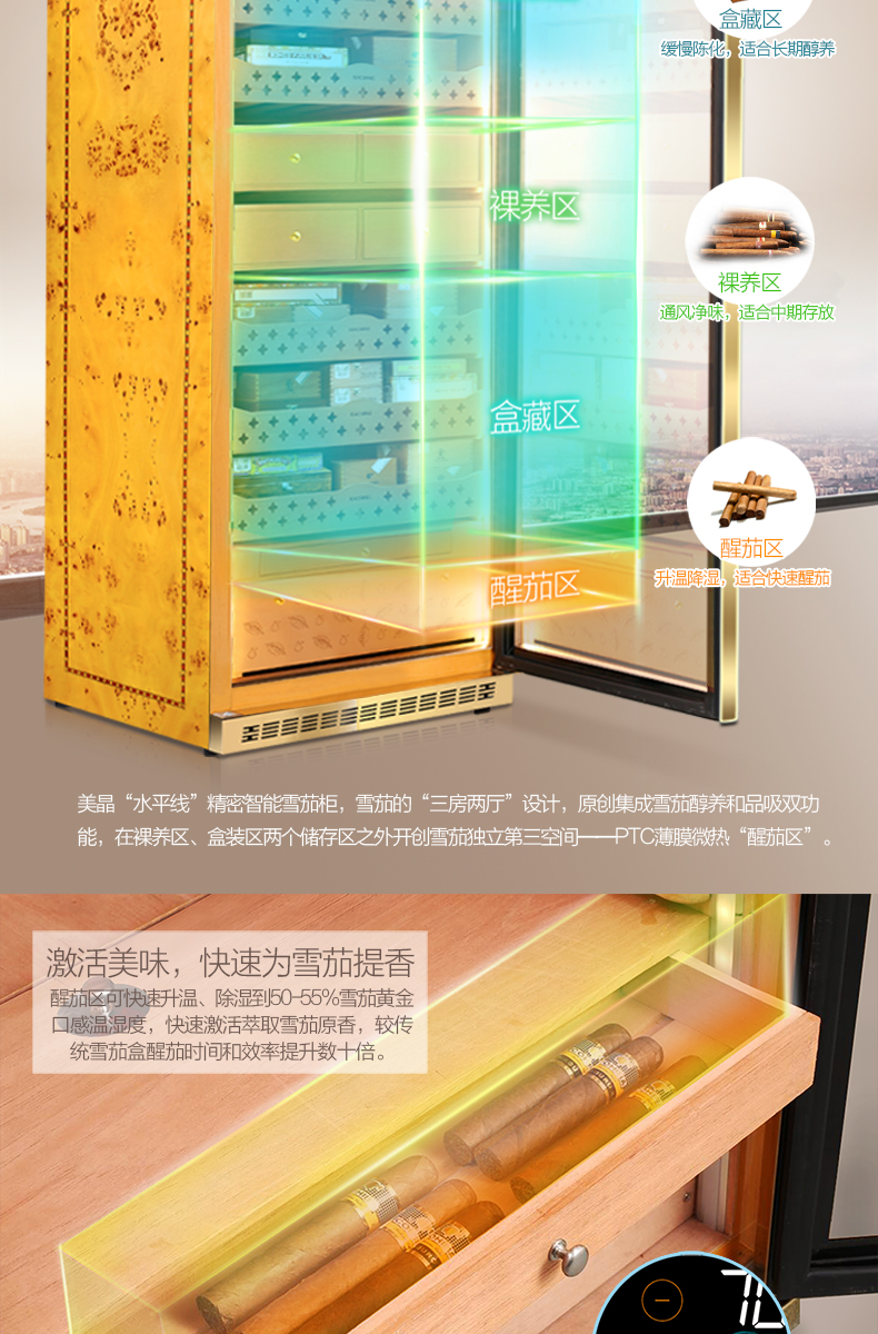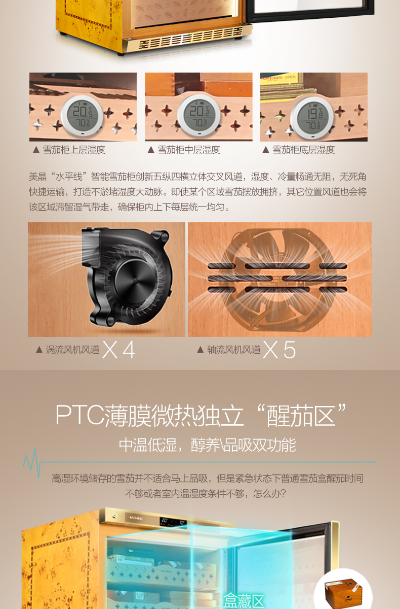 1. 美晶水平線雪茄柜,西班牙雪松原木盒養(yǎng)更鎖香,打造穩(wěn)定“裸養(yǎng)醇化小氣候”