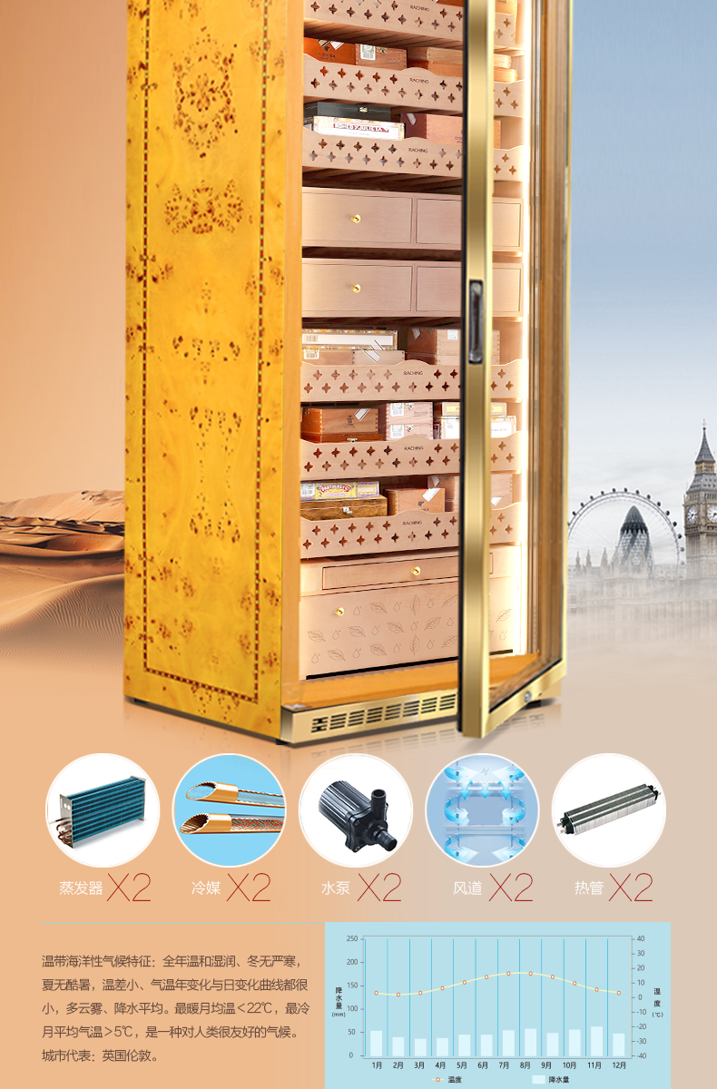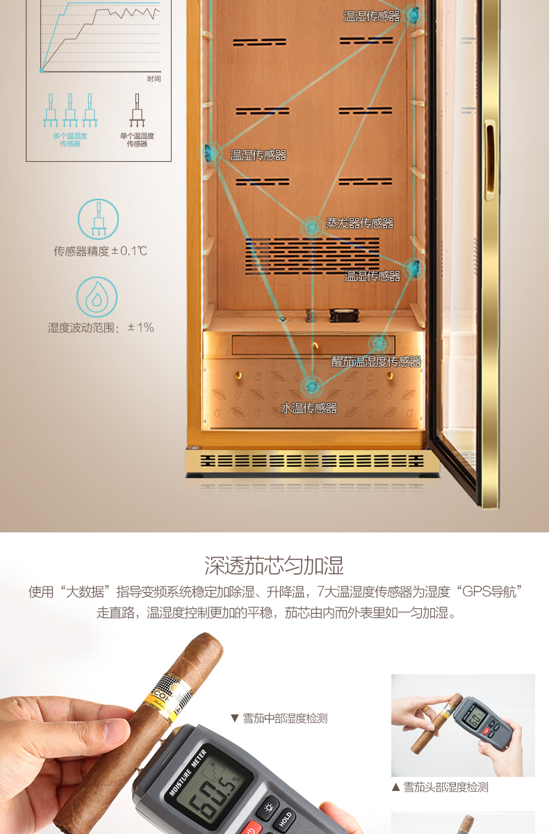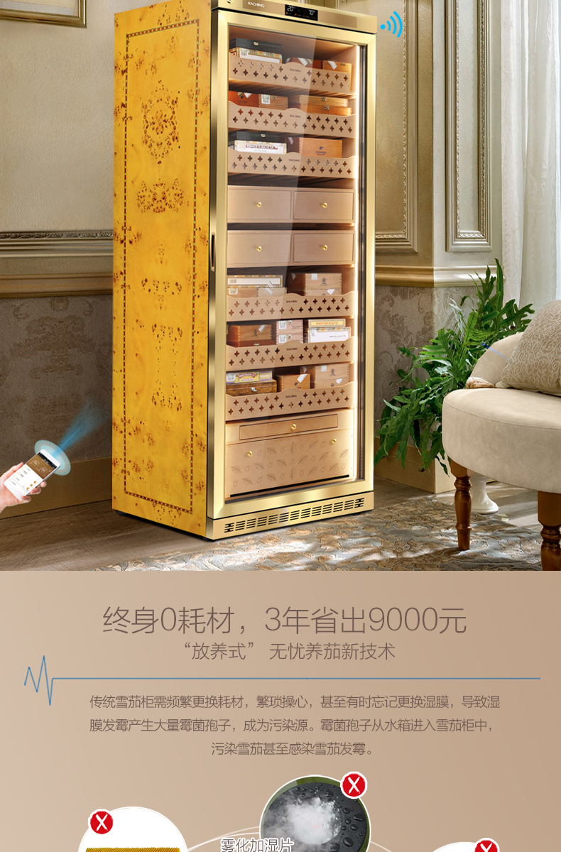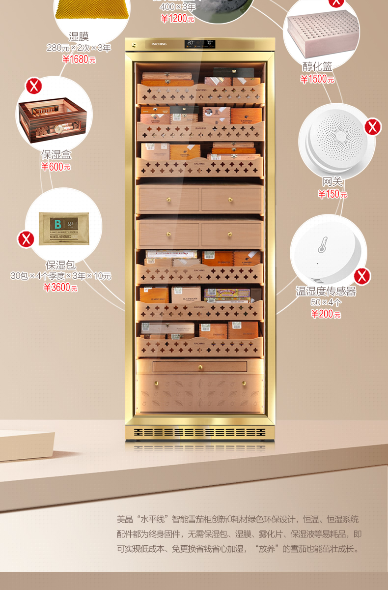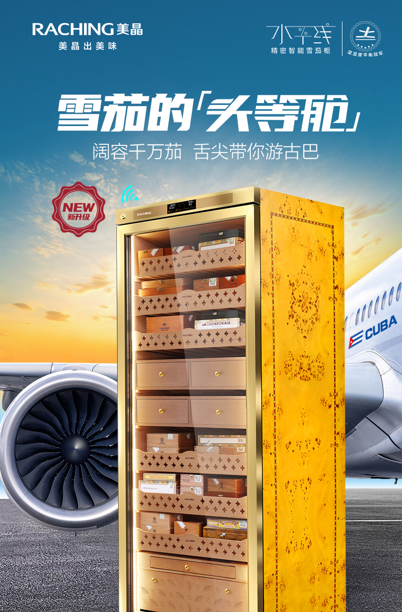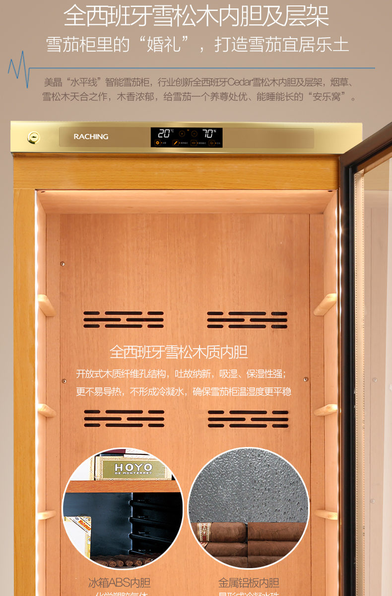 1. 美晶水平線雪茄柜,西班牙雪松原木盒養(yǎng)更鎖香,打造穩(wěn)定“裸養(yǎng)醇化小氣候”