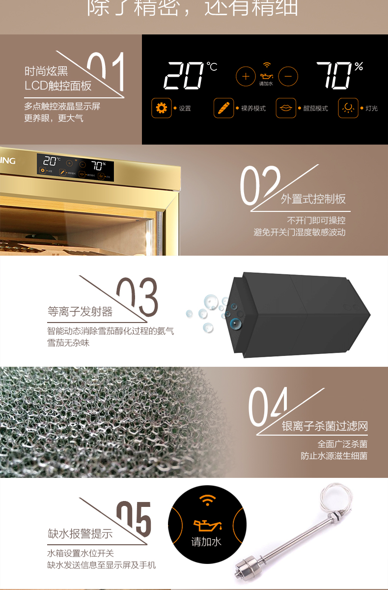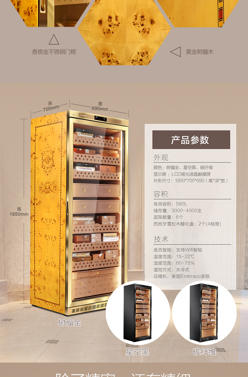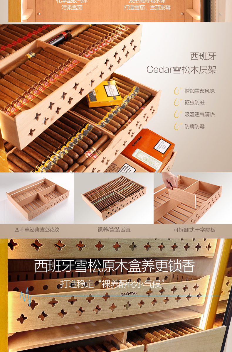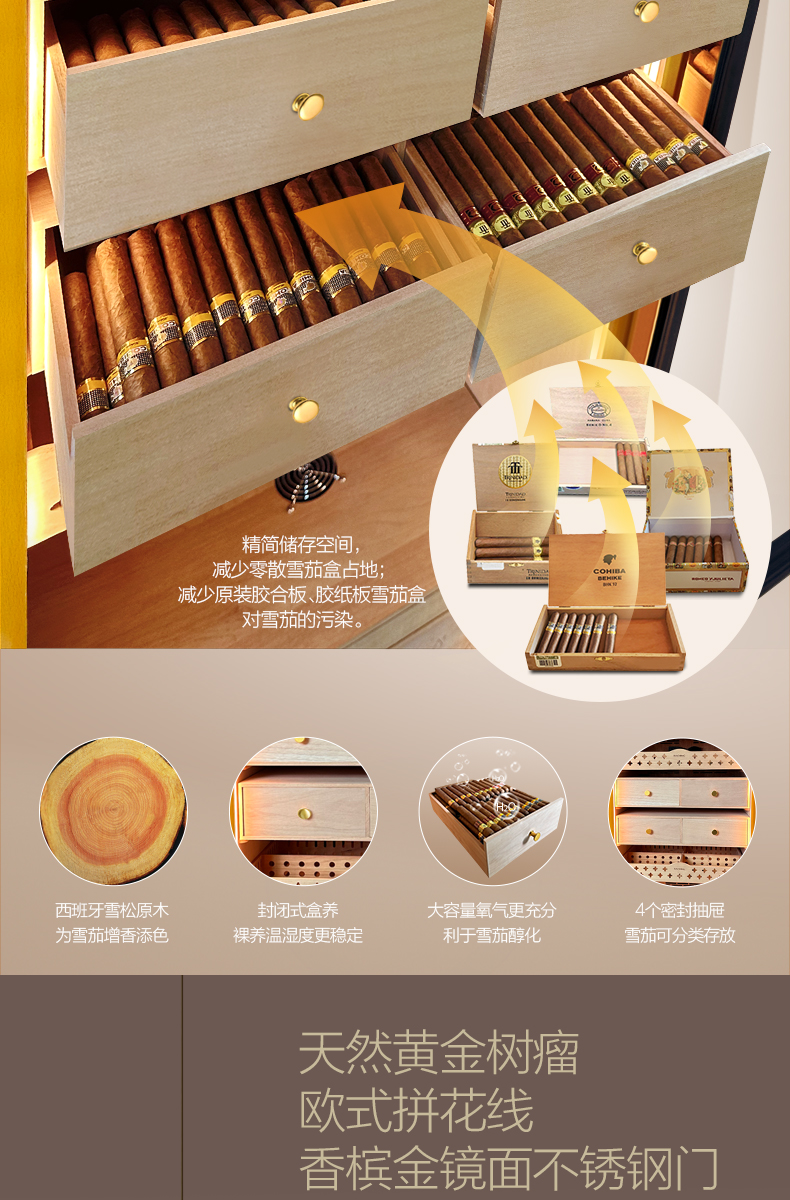 3. 大容量利于雪茄醇化;4個(gè)密封抽屜,雪茄可分類存放。