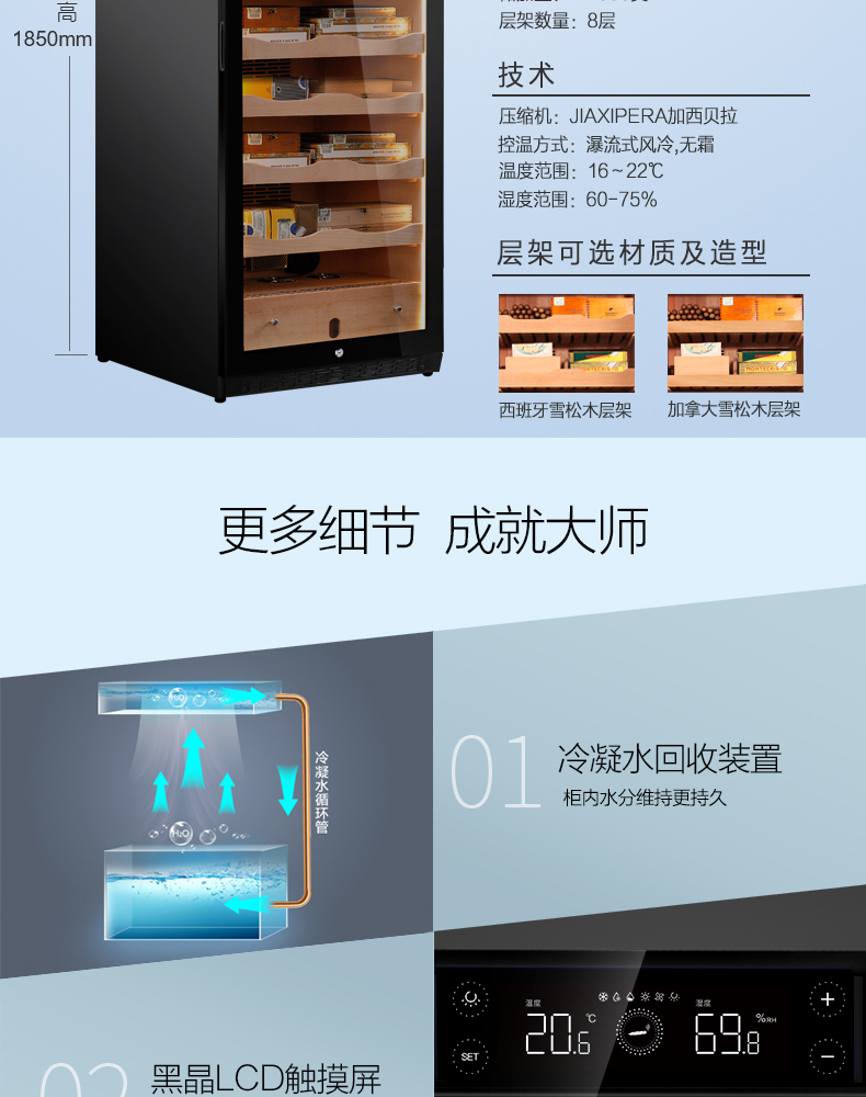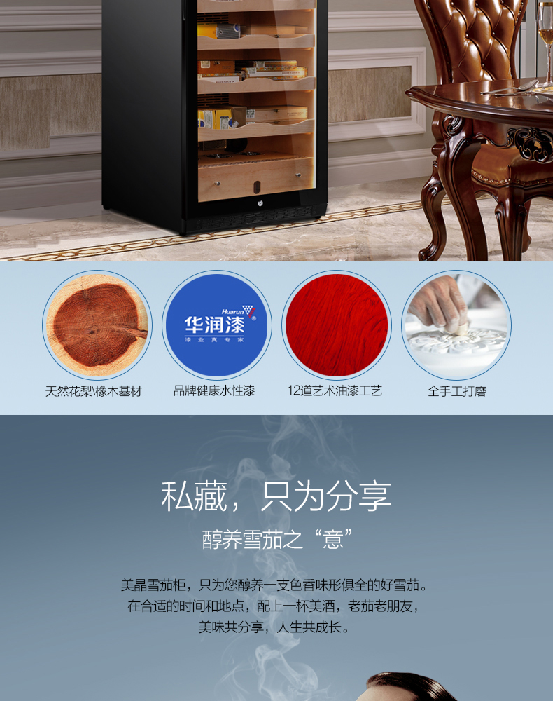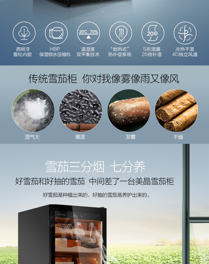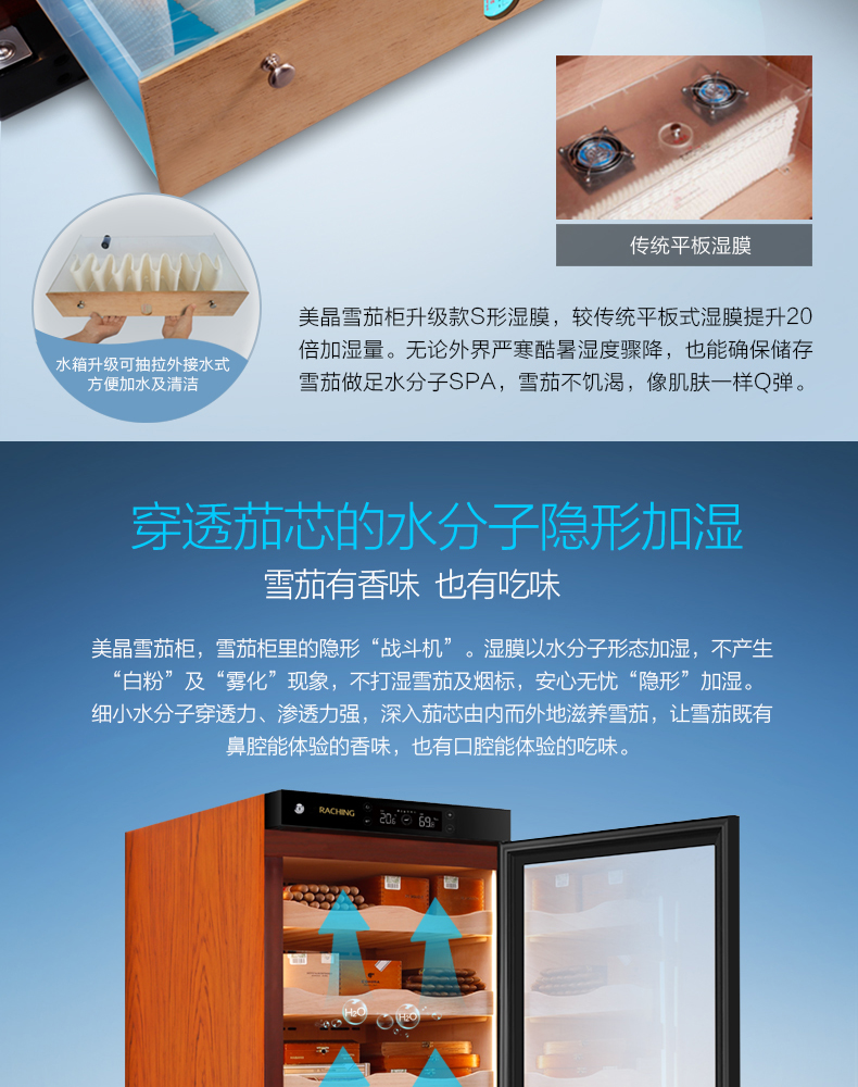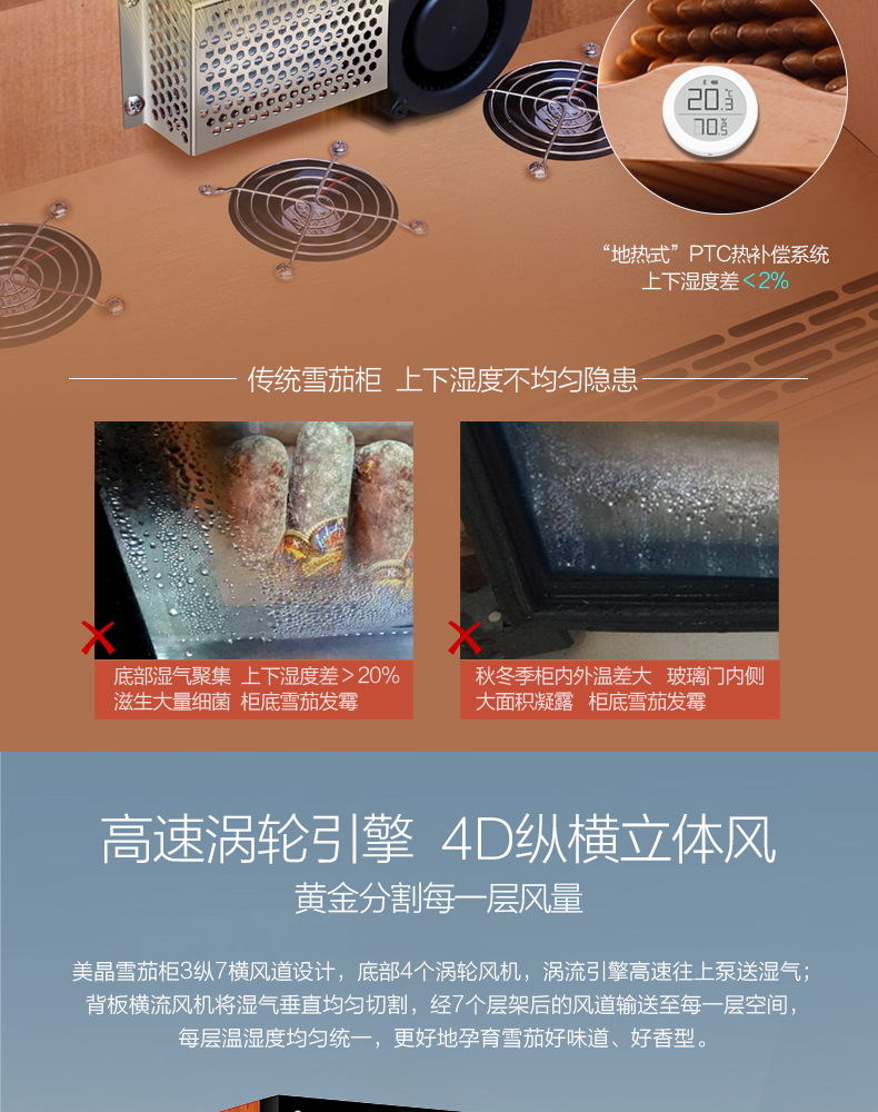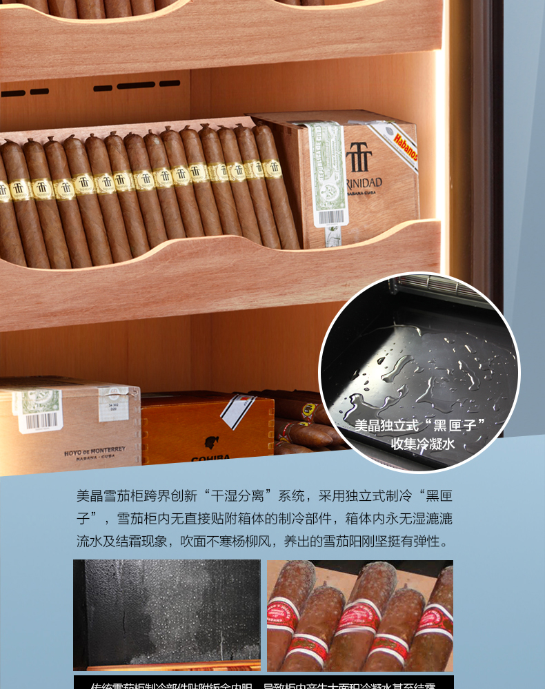 箱體內(nèi)永無傳統(tǒng)鈑金雪茄柜濕漉漉流水及結(jié)霜現(xiàn)象,