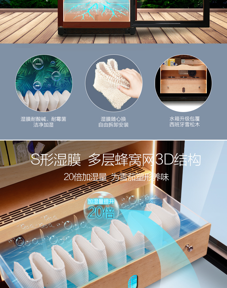 木制內(nèi)膽無冷凝水,吸濕、保濕效果更好,更能有效調(diào)節(jié)柜內(nèi)濕度。