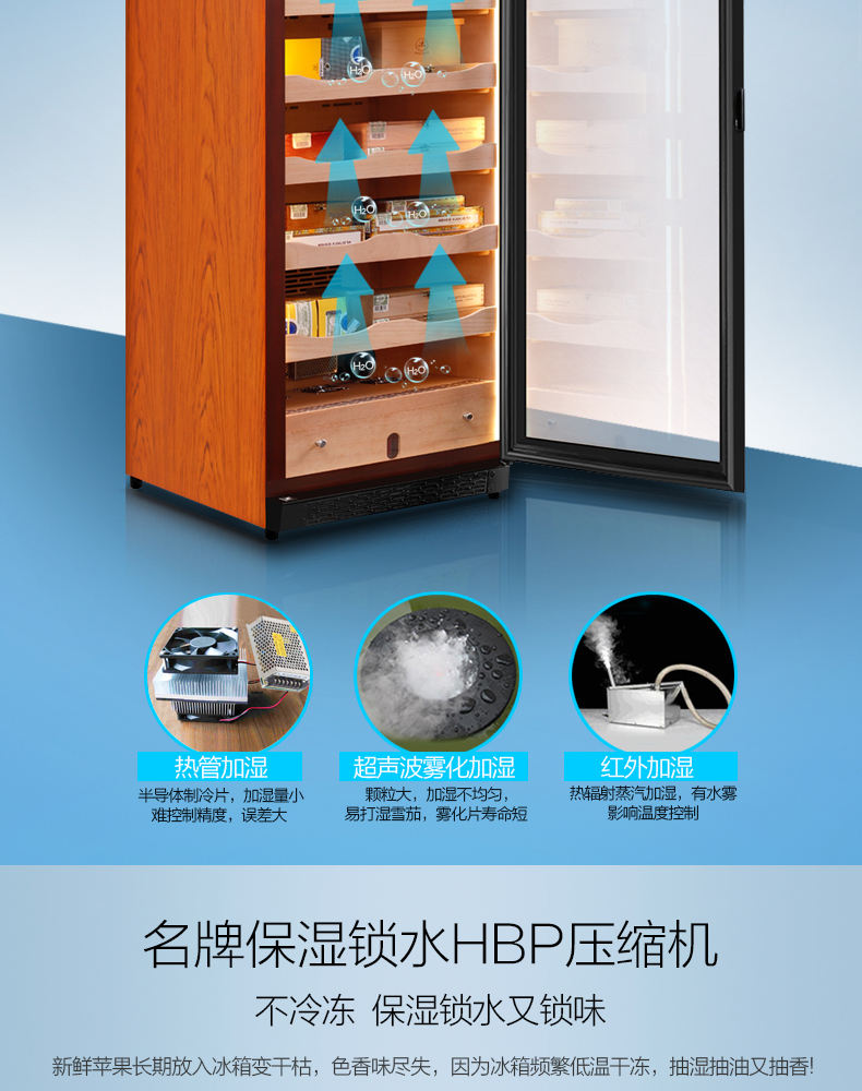 不干凍,制冷時(shí)截流雪茄柜空氣中的水分更少,