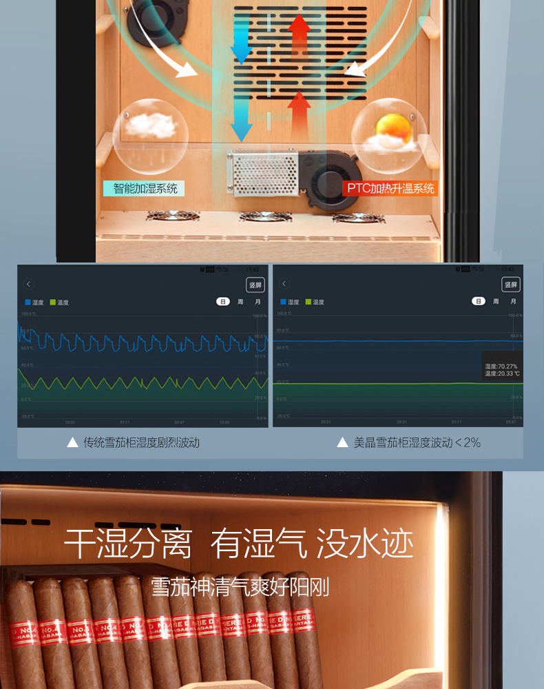 柜內(nèi)濕度穩(wěn)定相對(duì)于普通雪茄柜有顯著提升。