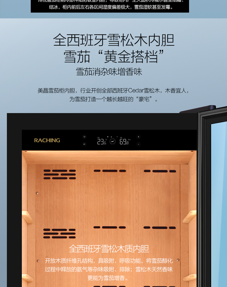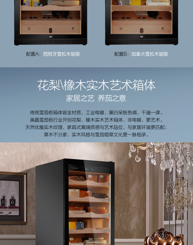 美晶雪茄柜全西班牙雪松木內(nèi)膽,能很好地醇化雪茄,