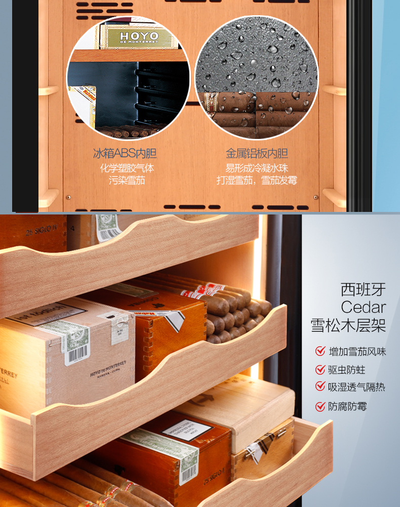 傳統(tǒng)鈑金雪茄柜金屬內(nèi)膽易積聚冷凝水,